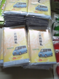 今日は、ダイハツの営業の方が、当日の来場者プレゼントとチラシを持ってきました。